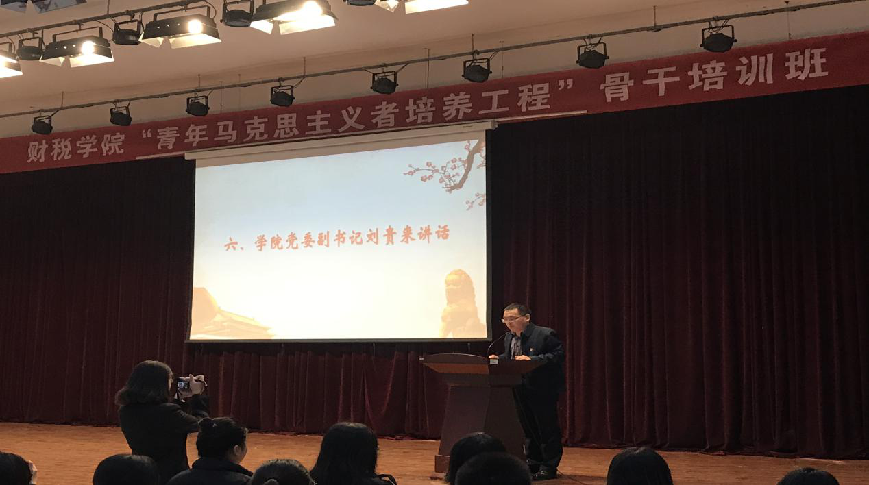在全体人员齐唱国歌后,穆娟首先对公司“青年马克思主义者培养工程”骨干培训班开班表示祝贺,对公司连续四年坚持开展青马工作提出了表扬。第二,告诫在场团员要增强团员意识,时刻注意用共青团员的标准严格要求自己。第三,“党旗所指就是团旗所向”,作为团员,认真落实“三会两制一课”制度和活力团支部建设工程,是加强团员思想政治教育和自我教育,是提升基层团组织凝聚力和战斗力的重要保障。刘贵来为青马班授总旗和各班班旗后,青马班辅导员代表宣读了公司青马班纪律管理规定,青马新学员代表则告诉同学们,要将青马班学到的理论知识融入到日常的学习和工作当中,化为思想上的不竭动力。最后,刘贵来向同学们提出四点建议;一、把握契机、认真学习、提升素养,增强思想先进性。二、志存高远、坚定信心、牢记使命,增强理想先进性。三、主动学习、开拓创新、知行合一,增强行动先进性。四、深入贯彻学习公司第三次党代会精神,培养社会主义建设者和接班人,实现高水平财经大学的经贸梦。