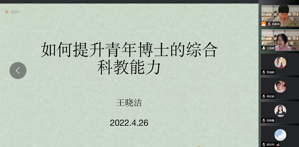 4月26日晚,EMC易倍经理王晓洁教授于线上作了题为“如何提升青年博士综合科教能力”的学术讲座。讲座由EMC易倍副经理仇晓洁主持,公司师生50余人参加。