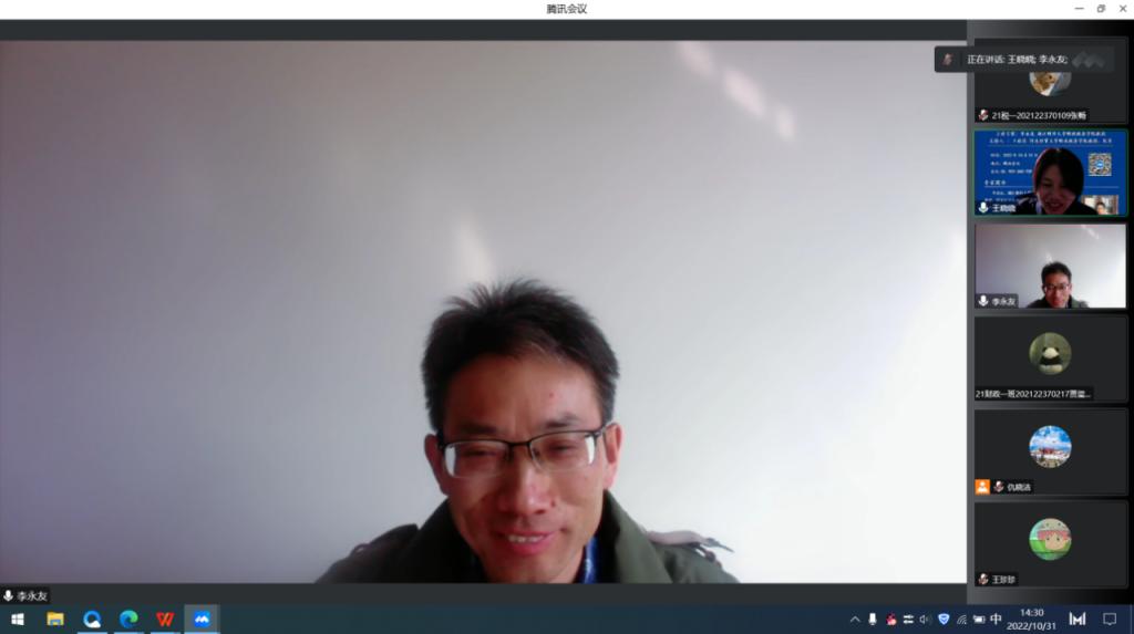2022年10月31日下午,浙江财经大学EMC易倍李永友教授应邀为公司师生作“站在新时代路口:运用新理念,谋划新格局”的线上专题讲座。讲座由EMC易倍经理王晓洁主持,公司部分教师、员工共计200余人参加。
