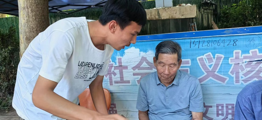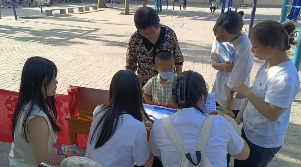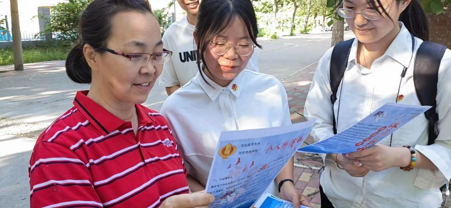青马三队的同学向小区内的居民分发制作的宣传单页和知识清单,重点讲解个人所得税转向附加扣除优惠政策,并邀请居民观看讲解视频、参与知识答题。